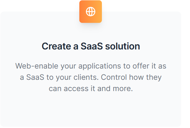 The ideal alternative to Citrix and Microsoft RDS for remote desktop access and Windows application delivery. Web-enable your legacy apps,create SaaS solutions or remotely access your centralized corporate tools and files.