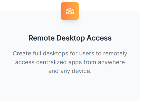 Remote Access: Run desktop apps remotely via browser or RDP client.